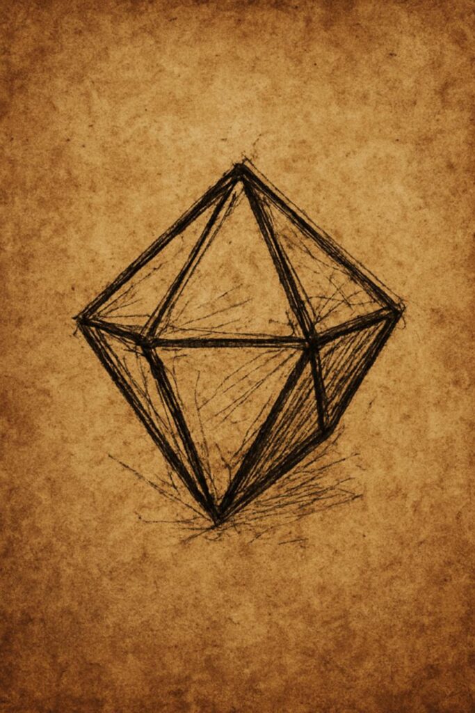 From words, I turned to images. Storyboards and pre-visual sketches now spread across my desk in uneven stacks, the frames rough yet insistent. Here is Robin in silhouette, her features lost to shadow. Here, the Trapezohedron, drawn with unsteady hand, for my pen wavers whenever I attempt its shape. I catch myself redrawing its angles again and again, never satisfied, yet each version bearing the same impossible geometry. It unsettles me, though I press on.